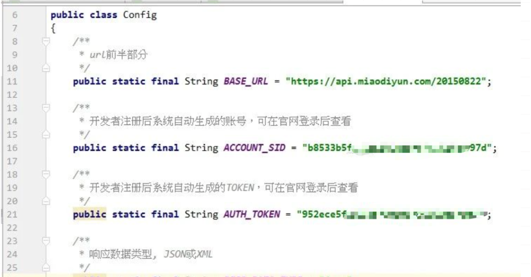 二、我这里只是编写一个简单的短信验证功能,要是用其他的语音验证。。。。等等需要去秒滴云官方下载文档,下面是编写的一个config文档,专门存放一些参数