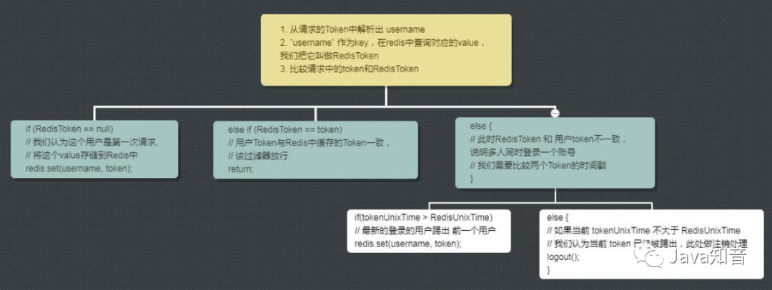 维护一个 username: jwtToken 这样的一个 key-value 在Reids中, Filter逻辑如下